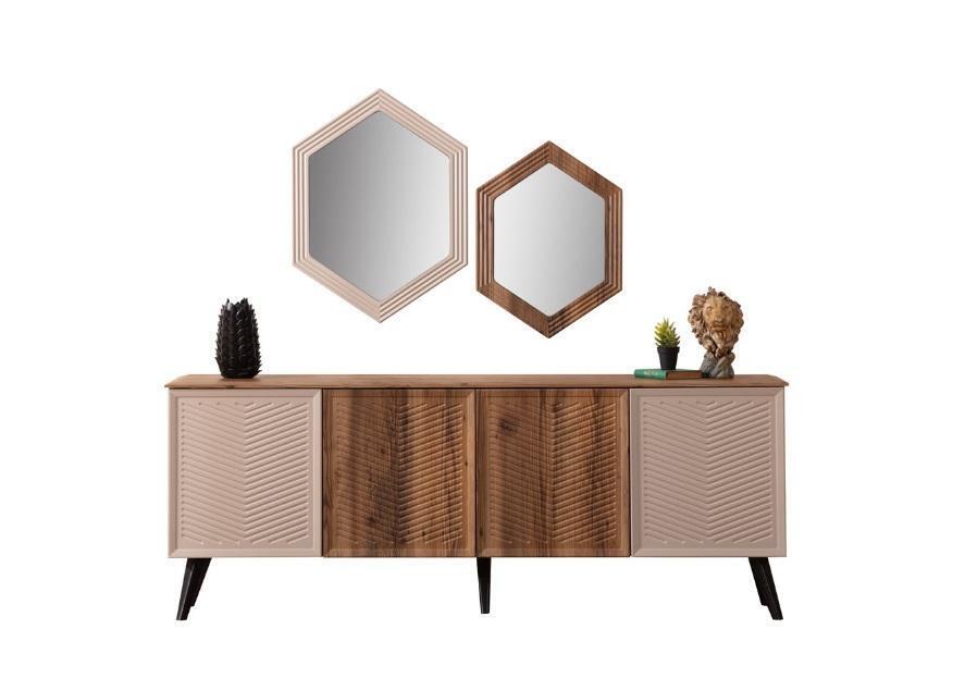 Beige Dining room Modern Dining room Suite Dining table Sideboard 2x Mirror