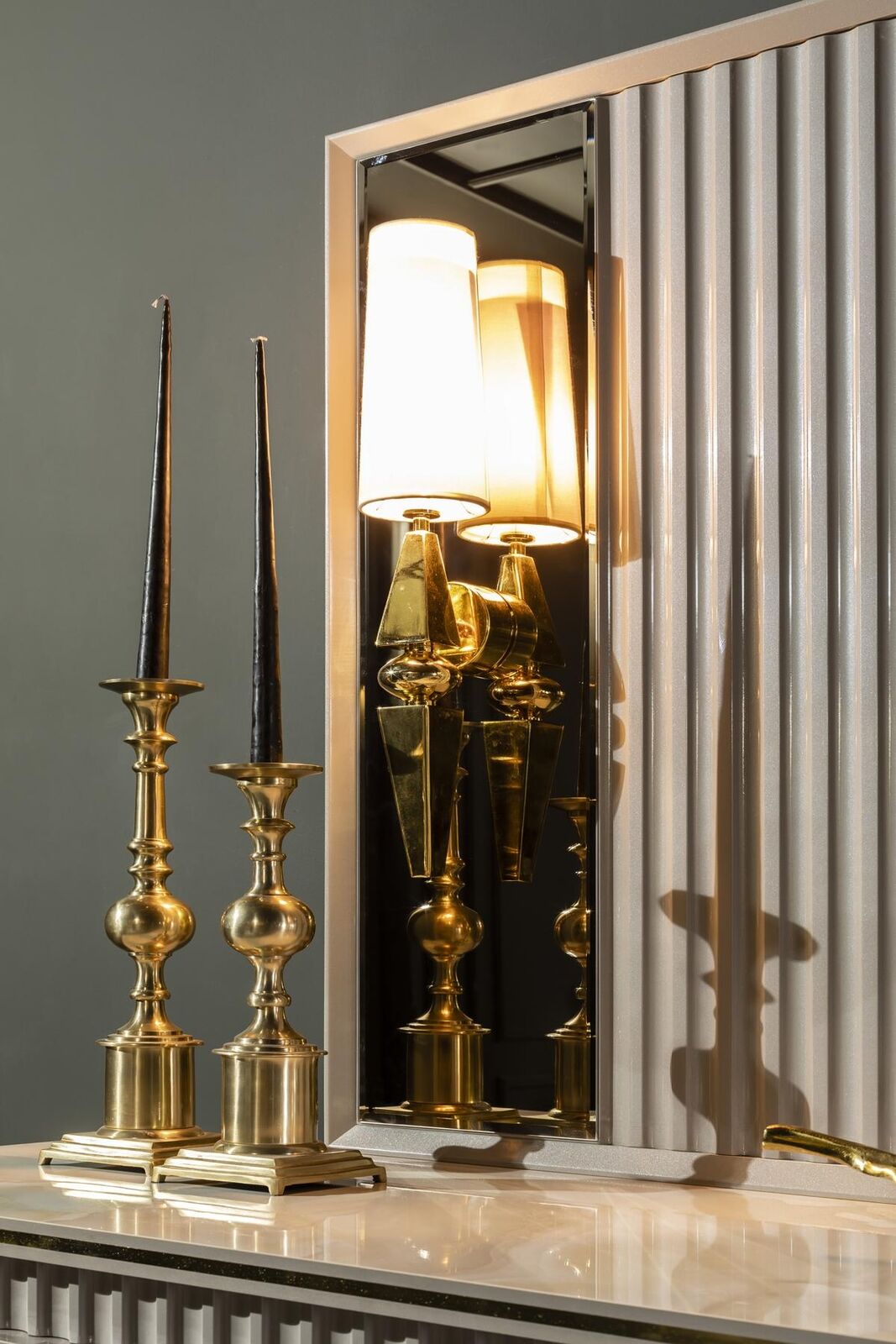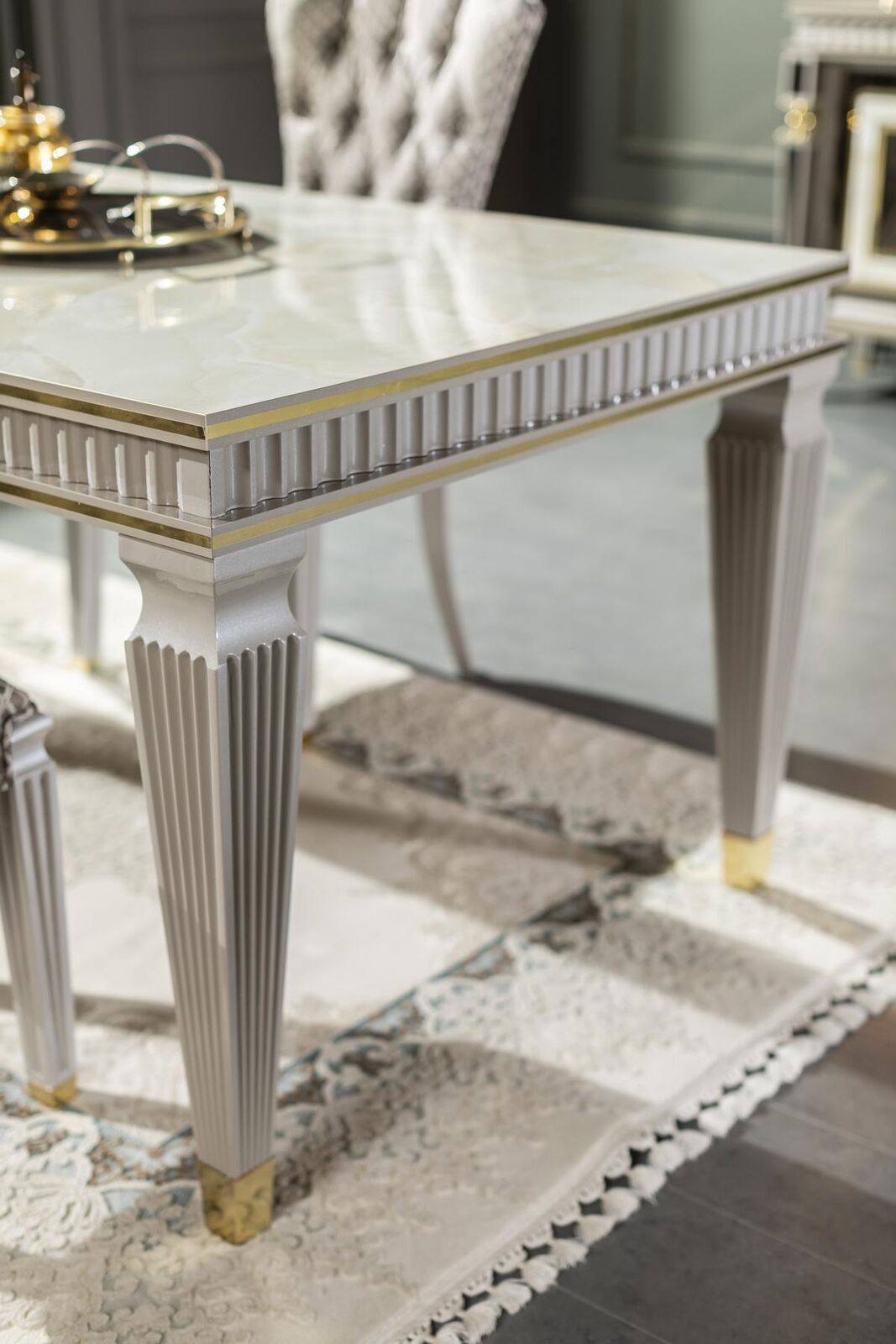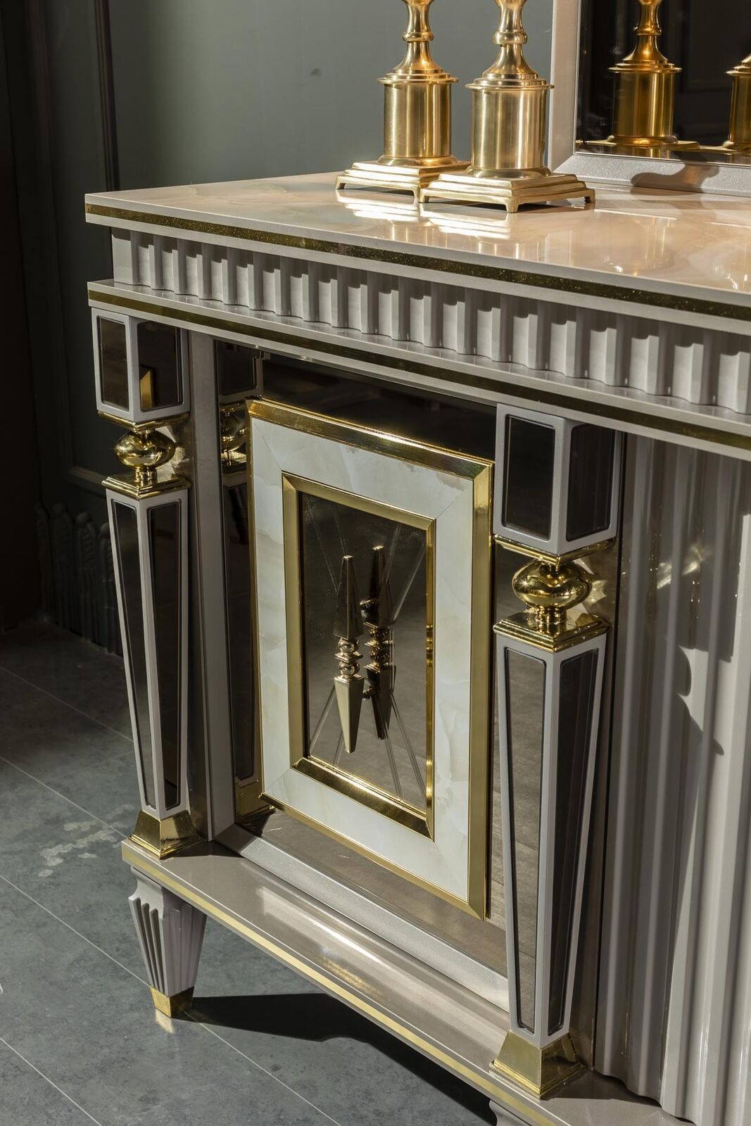Dining room set gray 4x chairs dining table sideboard mirror elegant design 7 pieces.