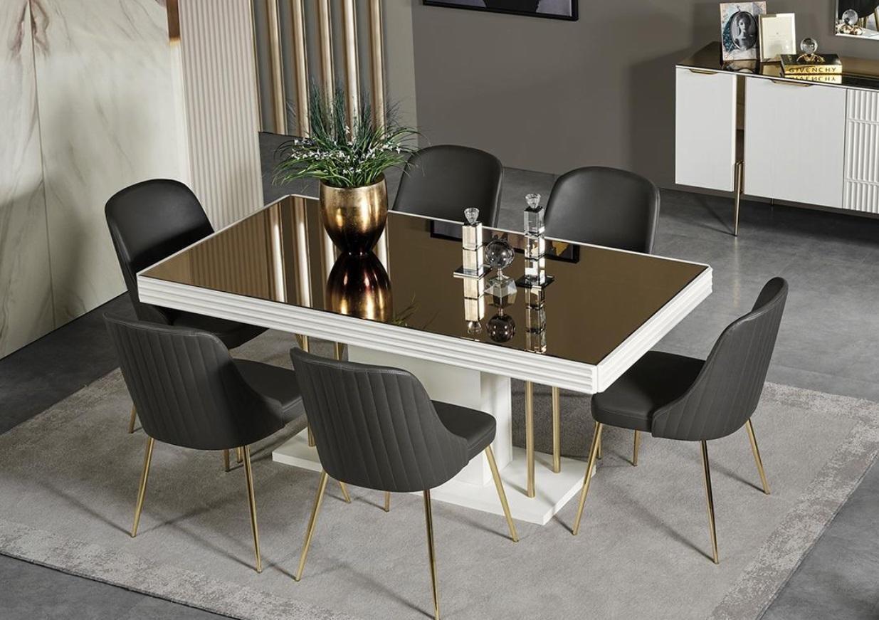 White -Gray Dining set Designer Suite Luxury Dining table 6x Chairs 7pcs