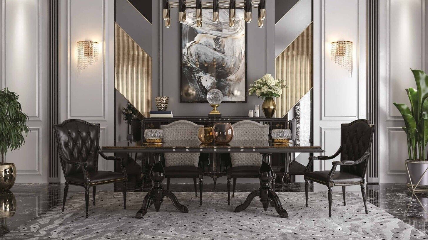 Luxury Dining room Set Suite 7pcs Black Wood Furniture Chest of drawers 6x Chair Table