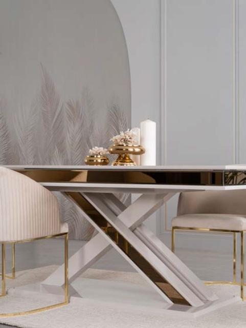 Column Table Dining set Table with 6x armchairs Dining room Chairs 7 pieces
