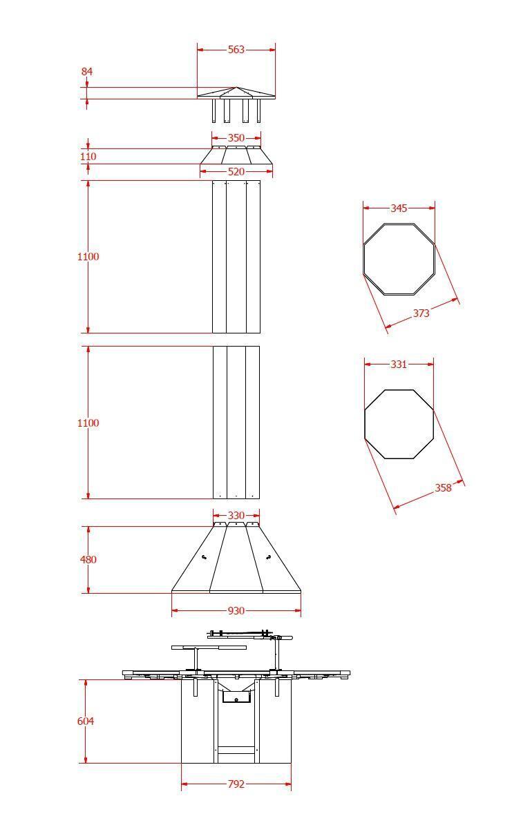✔ 8-Ecken-Grill with umlaufendem Table and from ziehbarem Schornstein (inkl. 3 Roste)