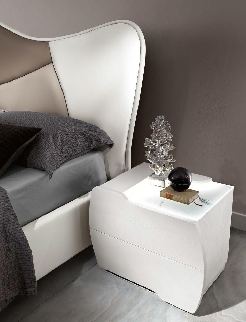 Bedroom Bed Bedside table Chest of drawers Mirror Suite White Modern Luxury Set 5pcs