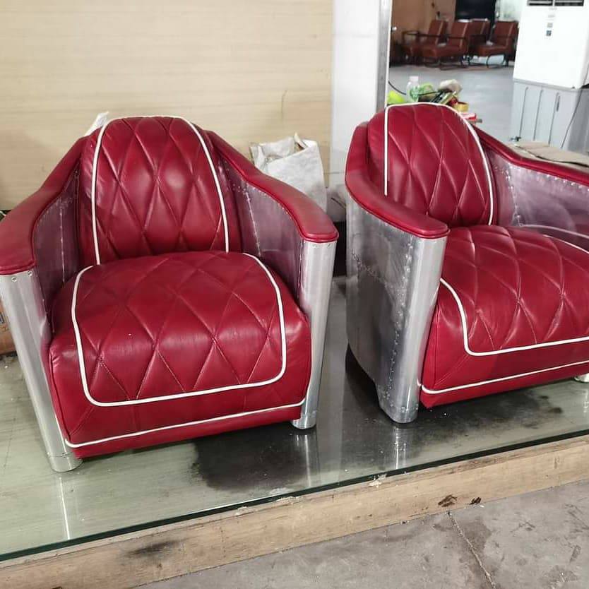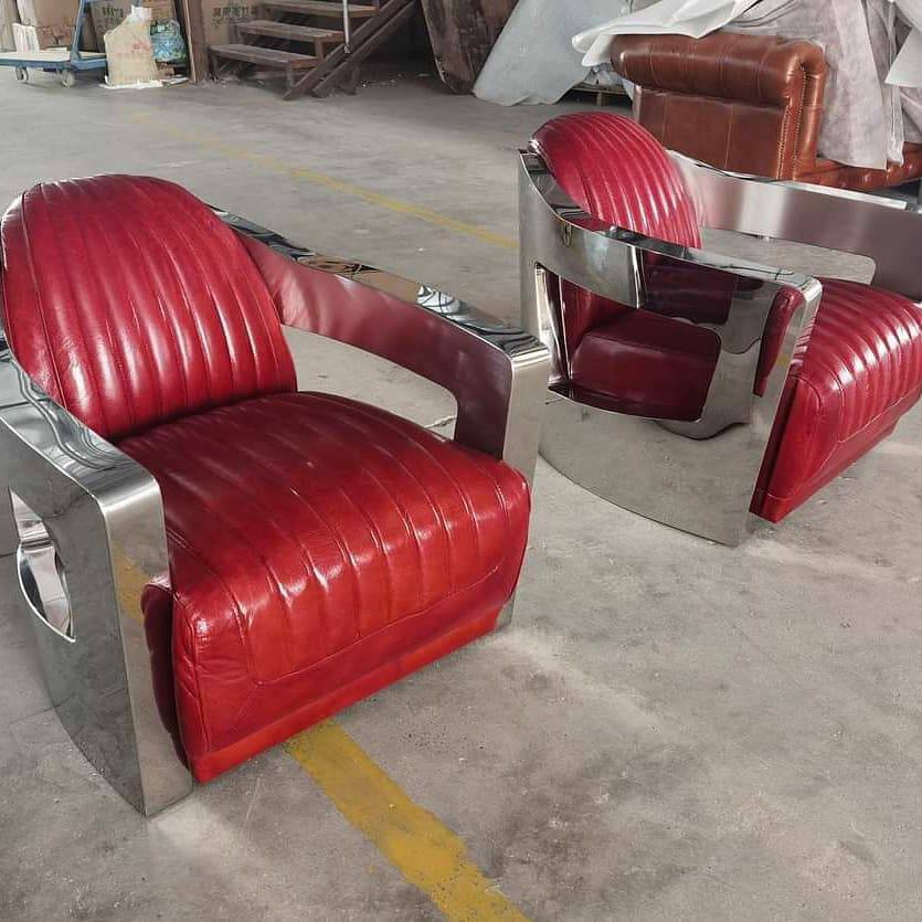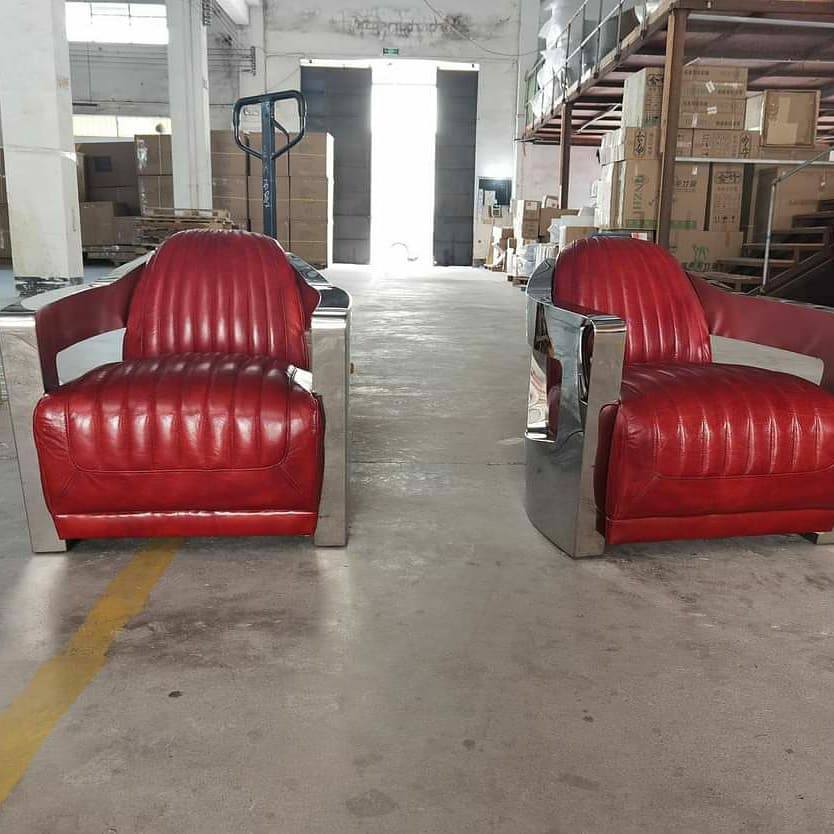 Aircraft Vintage Leather Chair Red Genuine leather Retro Armchair Design Club Chair