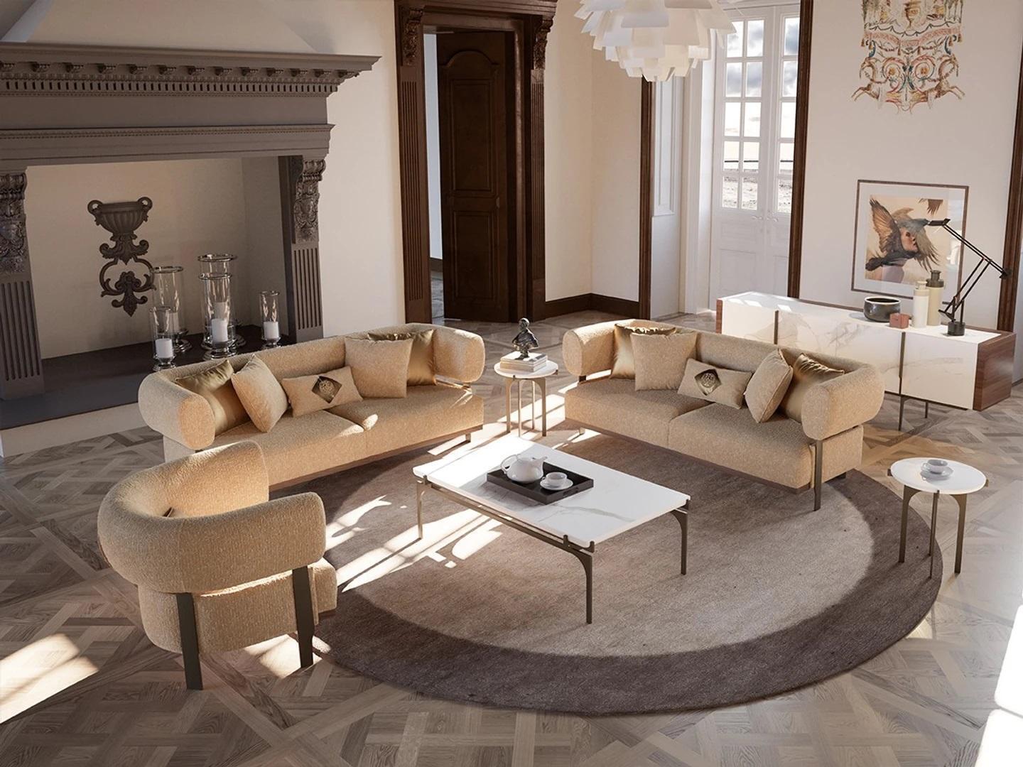 Enhance the elegance of your living room with our exquisite Beige Sofa Set Design Upholstered Furniture Living Room Set. This 6-piece set includes 2 spacious three-seater sofas, a stylish armchair, a chic coffee table, and two sleek side tables. Crafted from high-quality wood with luxurious textile upholstery, this set is both durable and comfortable. The neutral beige color adds a touch of sophistication to any decor, creating a warm and inviting atmosphere. The dimensions of each piece are carefully designed to provide ample space for relaxation while maintaining a sleek and modern look. Transform your living space with this sophisticated set that offers both style and comfort. Elevate your home decor with our Beige Sofa Set Design Upholstered Furniture Living Room Set today!