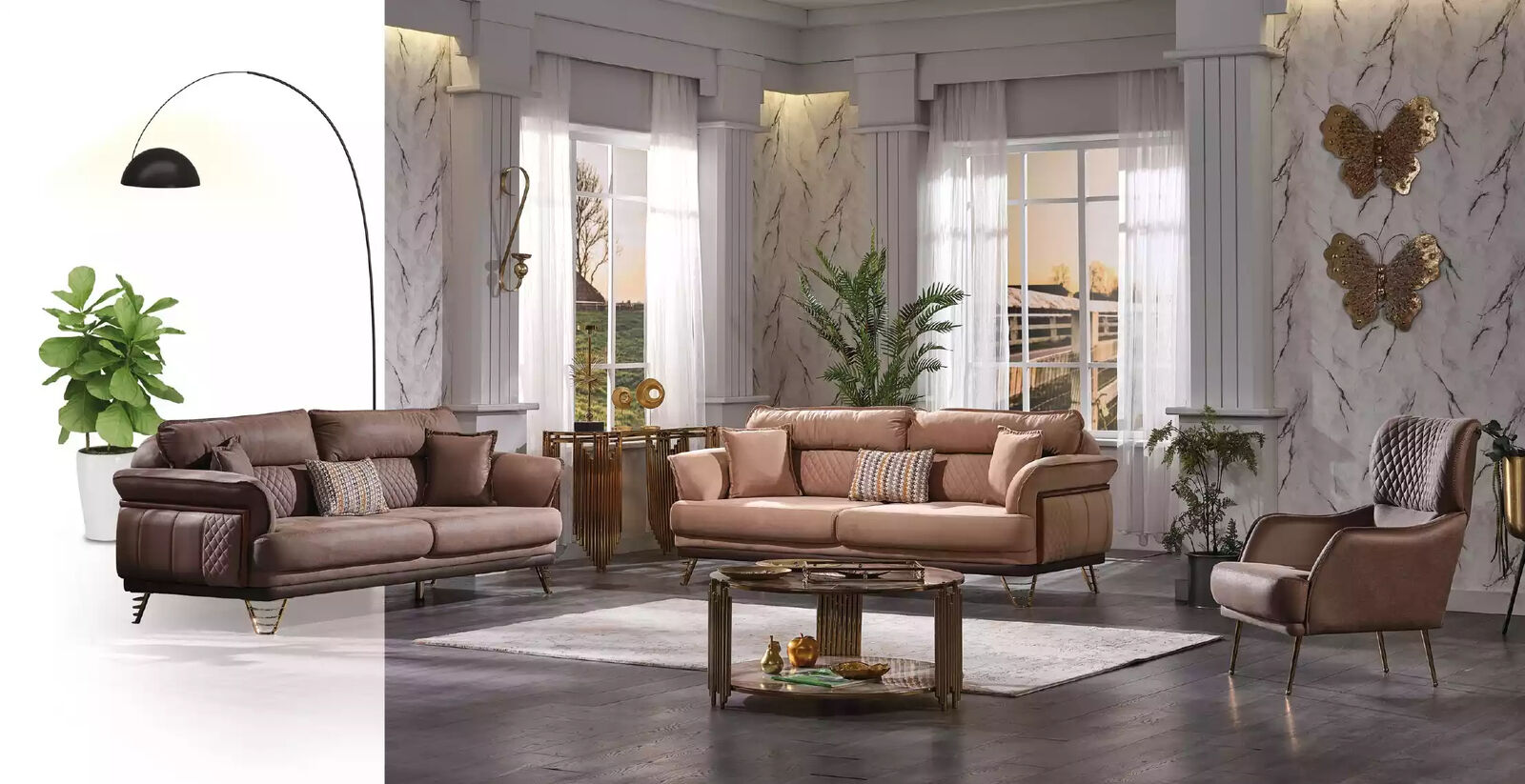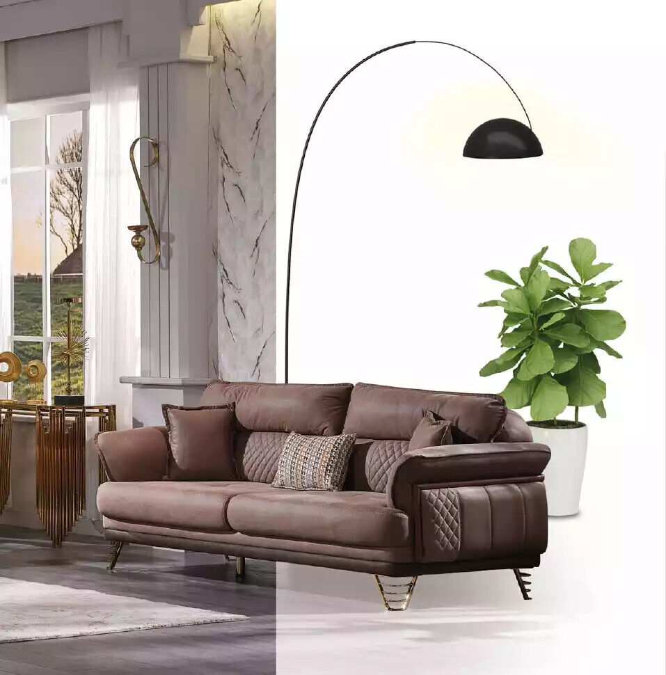 Brown Sofa Set Luxury 3+3+1 Seater Living room Furniture Sofas Armchair
