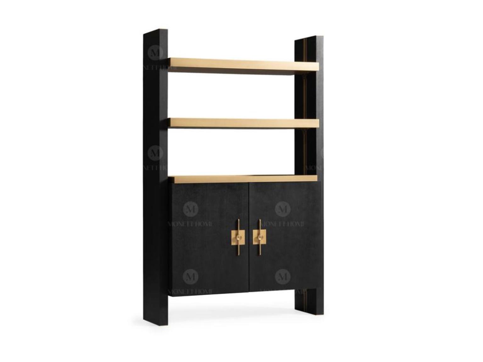 Wardrobe with shelves wooden cabinet cabinet Wood Black Design Gold new