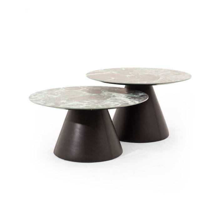 Stylish 2x coffee tables with porcelain top in brown color living room