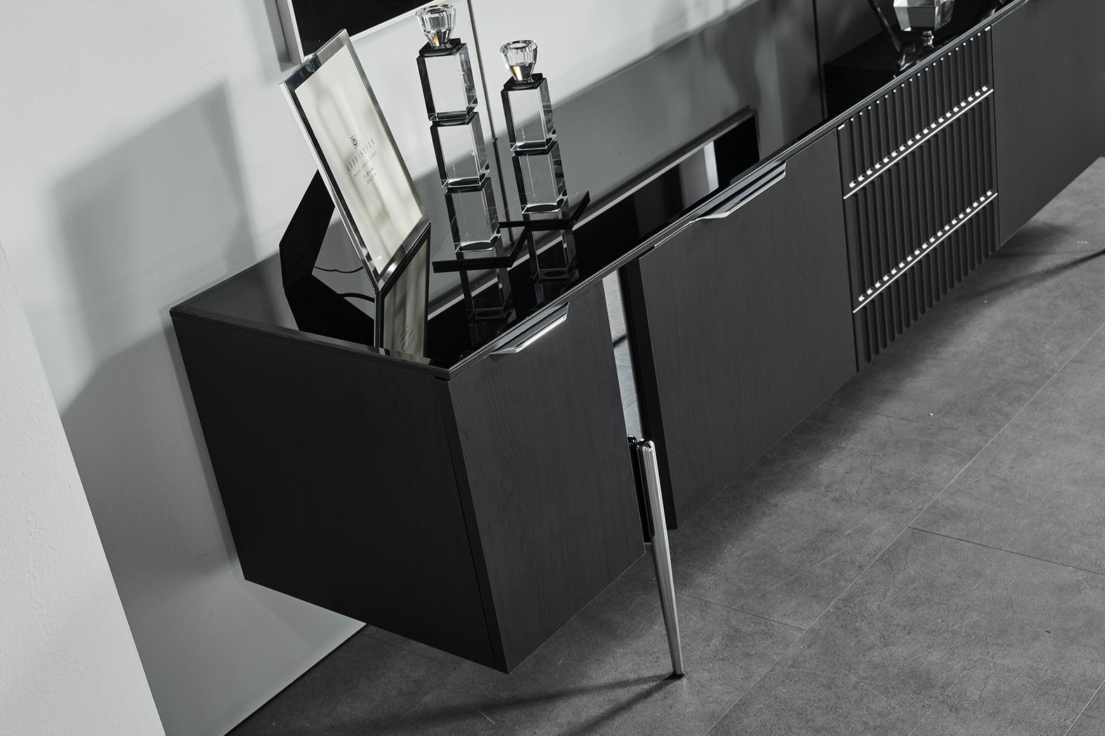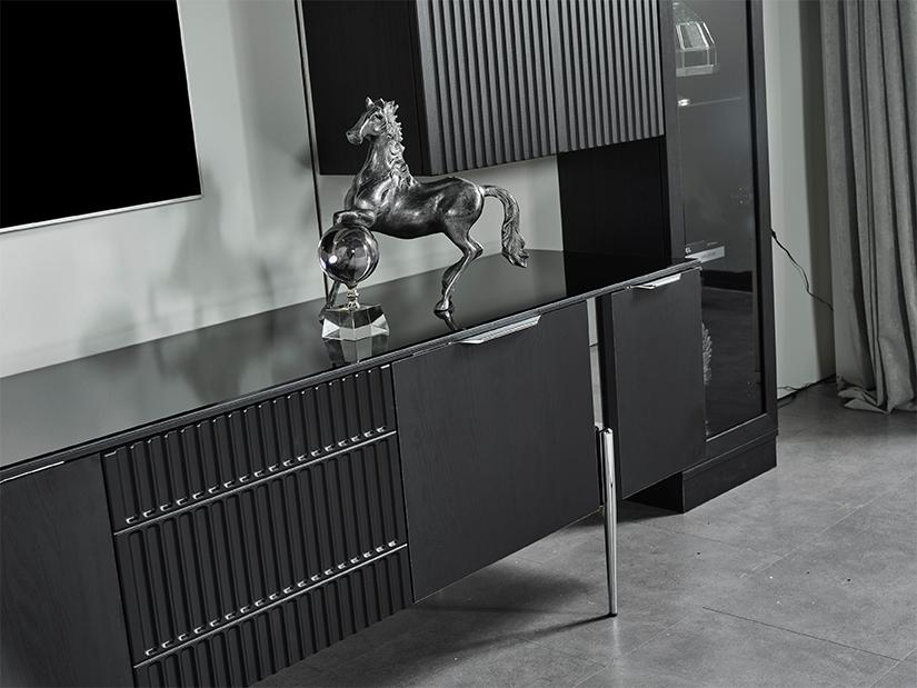Black TV lowboard designer living room furniture luxury wall cabinet 3 pieces