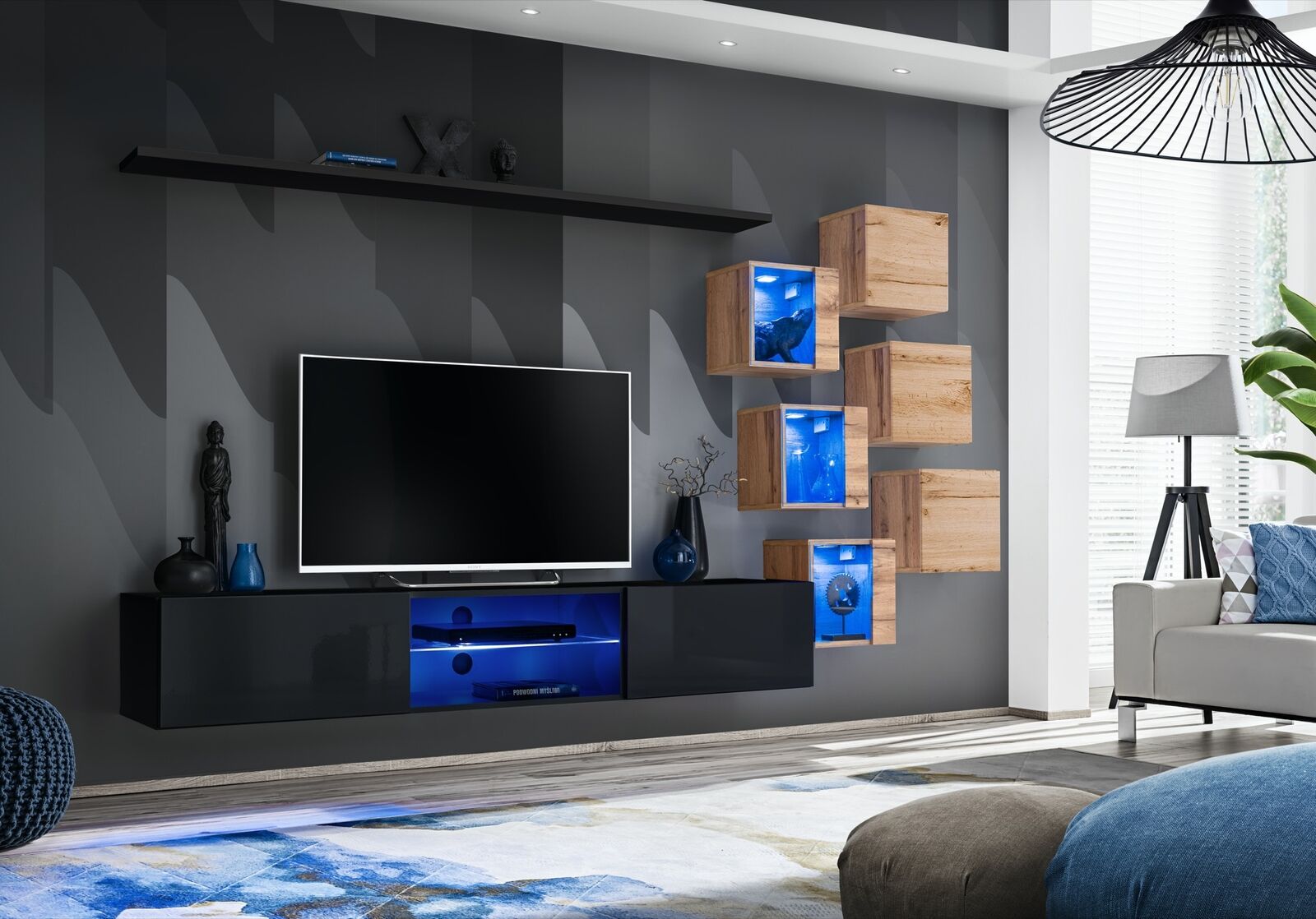 Wooden furniture, modern wall unit, designer living room furniture, TV lowboard, wall cabinet