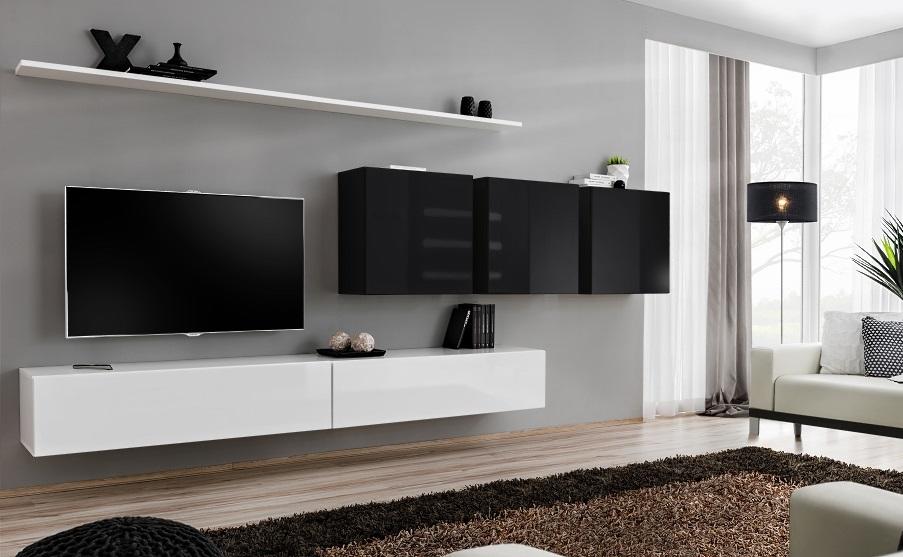 White Wall unit 2x TV lowboard Sideboard Living room furniture Wall cabinet Designer