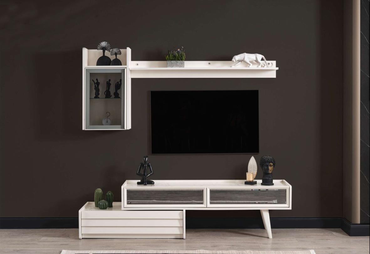 White Wood Wall unit Designer Wall Cabinet Luxury Shelf Elegant TV Wardrobe