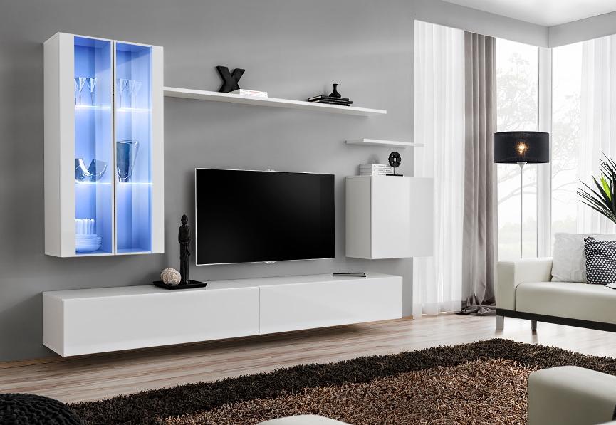 Wall unit 7 pieces 2x hanging wardrobe design furniture living room style modern TV lowboard
