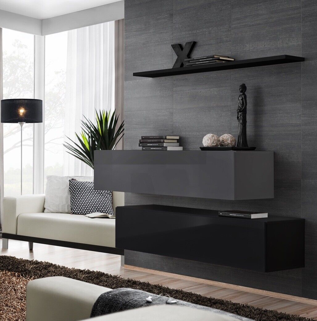 Wall unit Living room Wall unit Modern Black Wood Wardrobe Wall Shelf