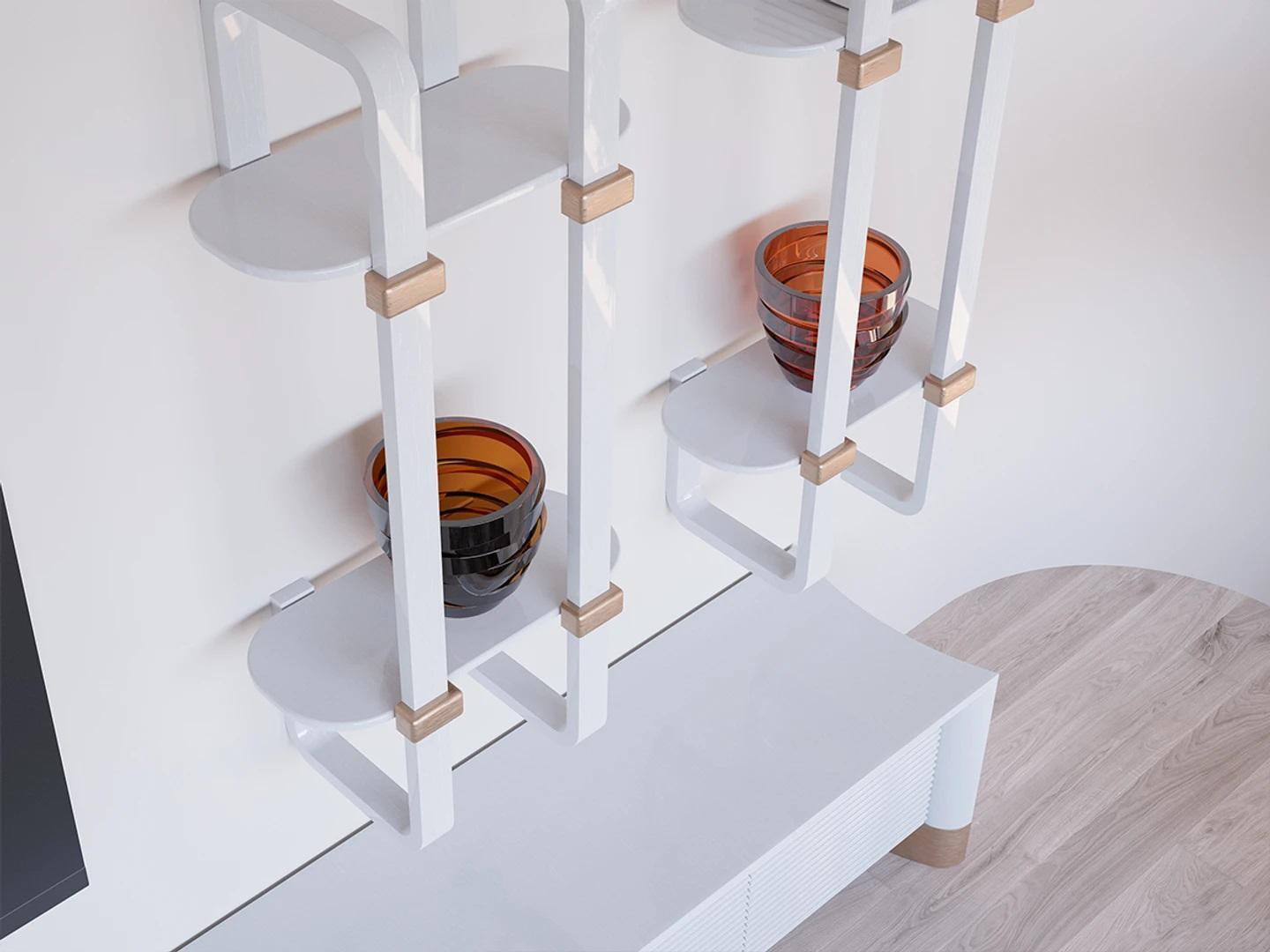 Living room wooden furniture TV lowboard design 2x wall shelves Modern Furnishings