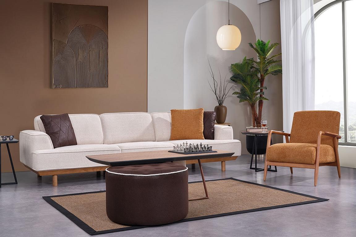 Enhance your living room with our Complete Living Room Sofa Set Designer Upholstery Armchair. This four-seater set is perfect for adding both style and comfort to your space. The sofa's dimensions are approximately 275 x 95 x 90 cm, while the armchair is around 70 x 95 x 90 cm. The set comes in a beautiful color as shown, adding a touch of elegance to your home decor. Made with high-quality wood and textile materials, this set is durable and designed to last. Elevate your living room with this sophisticated furniture set that provides ample seating for you and your guests. Make your living space cozy and stylish with our Designer Upholstery Armchair four seater set today.