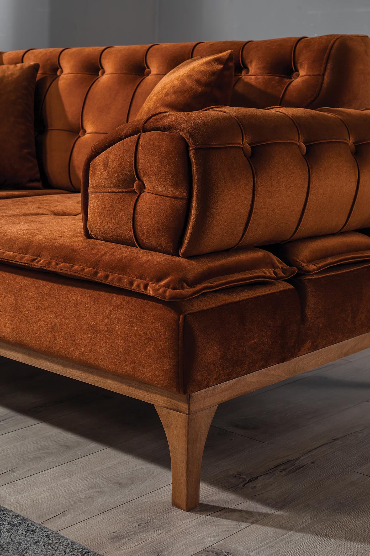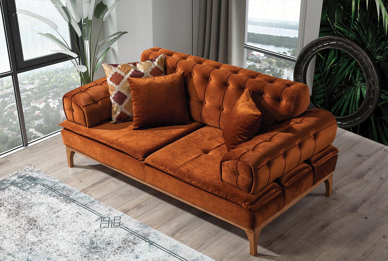 Introducing our Suite Sofas Sofa Armchair Three Seater 3+1 Seater in vibrant Orange color! This sofa set is perfect for adding a pop of color to your living space. Crafted with high-quality wood and textile material, the 3-seater sofa comes in dimensions of approximately 220 x 92 x 82 cm, while the armchair is around 70 x 70 x 82 cm. At our brand, we offer the flexibility to customize your sofa set according to your preferences. Choose from a wide range of colors such as Chestnut Brown, Moss Green, Cherry Red, and more. You can also select the material of your choice, including velvet, faux leather, or genuine leather. Upgrade your living room with style and comfort with our Suite Sofas Sofa Armchair set. Elevate your relaxation time with this chic and cozy furniture set. Order yours today and bring a burst of color to your home!