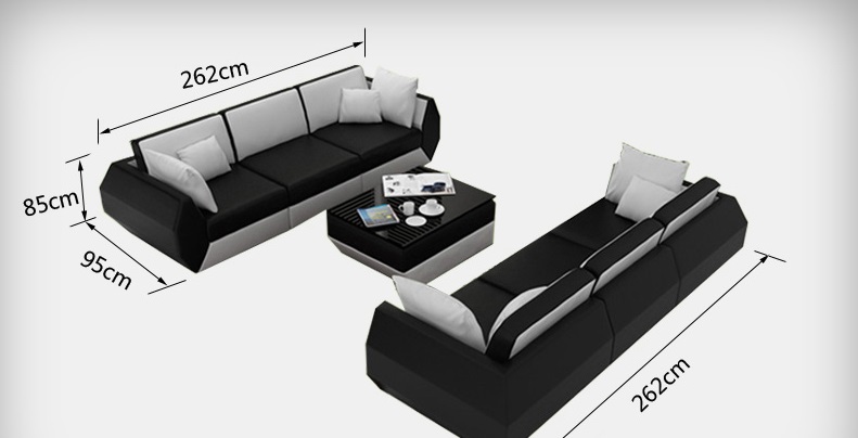 Bring modern sophistication and convenience to your living room with our Leather Sofa Couch Set. This stunning 3+3 seater suite is designed to elevate your space while providing ultimate comfort. Made from premium leather fibre fabric, this couch set comes with a USB automatic click feature for your convenience. Customize your set with a free choice of color to match your decor perfectly. Looking for more options? Inquire with us for a variety of color choices. You can also choose from different material groups to suit your preferences. Opt for additional features like an electric relax footrest, a fridge cup holder, a sound system, or underbody lighting to enhance your lounging experience even more. With an inner frame made of real wood and Italian cowhide upholstery, this sofa set offers both style and durability. Upgrade your living space with our modern Leather Sofa Couch Set today and enjoy the luxury you deserve.
