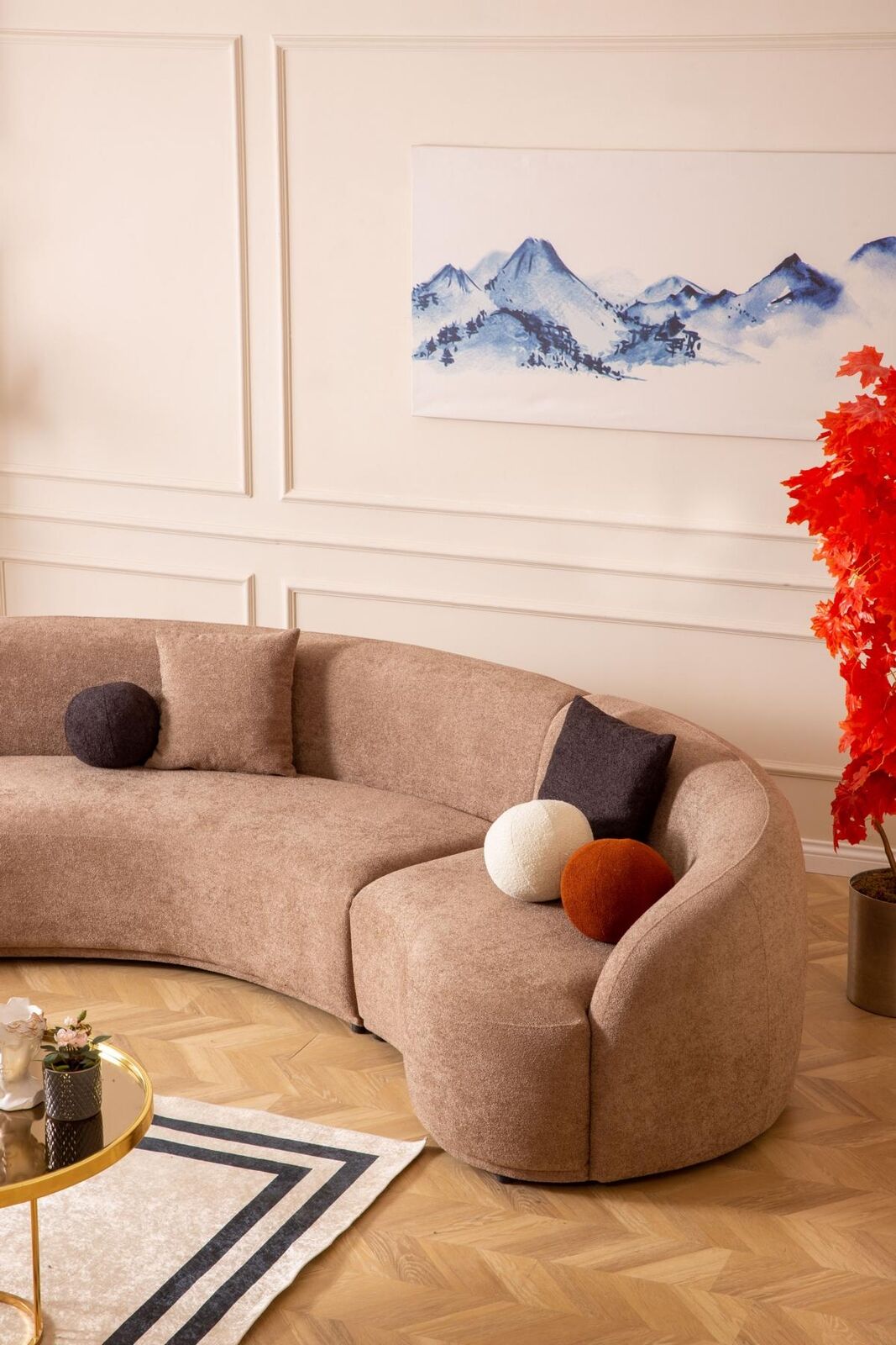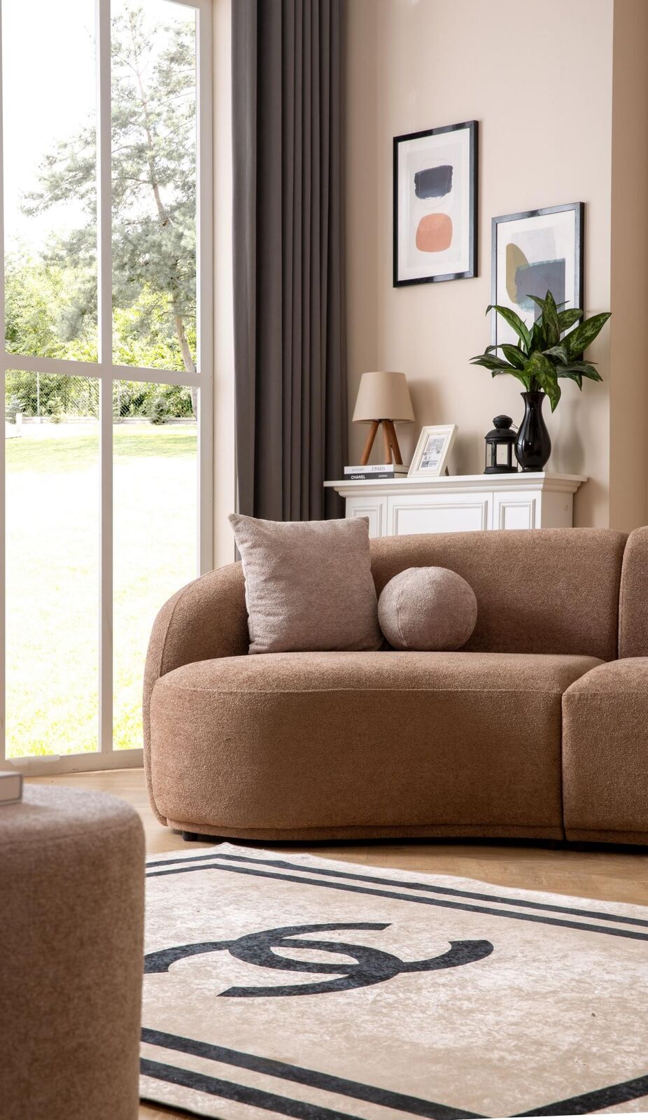 Designer Sofa, Round Brown Sofa, Modern Furniture, Luxury Couch, Living room set