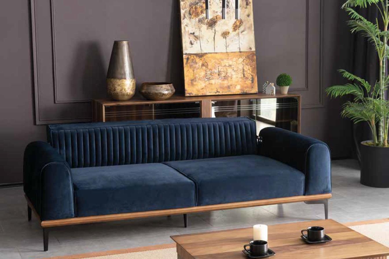 Upgrade your living room with our stylish and comfortable Blue e three-seater couch! This sleek piece of furniture is perfect for your seating needs and will add a touch of sophistication to any space. Made with a real wood inner frame and high-quality fabric, this couch guarantees durability and comfort. The dimensions are approximately 93 cm in width, 233 cm in length, and 80 cm in height, providing ample space for relaxation. Choose from a variety of colors to suit your taste and decor, including Indigo Blue, Moss Green, Lavender, and more. Elevate your living room with this elegant three-seater couch today!