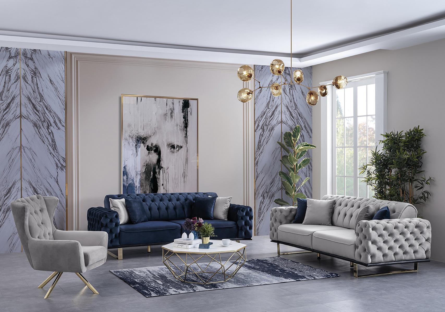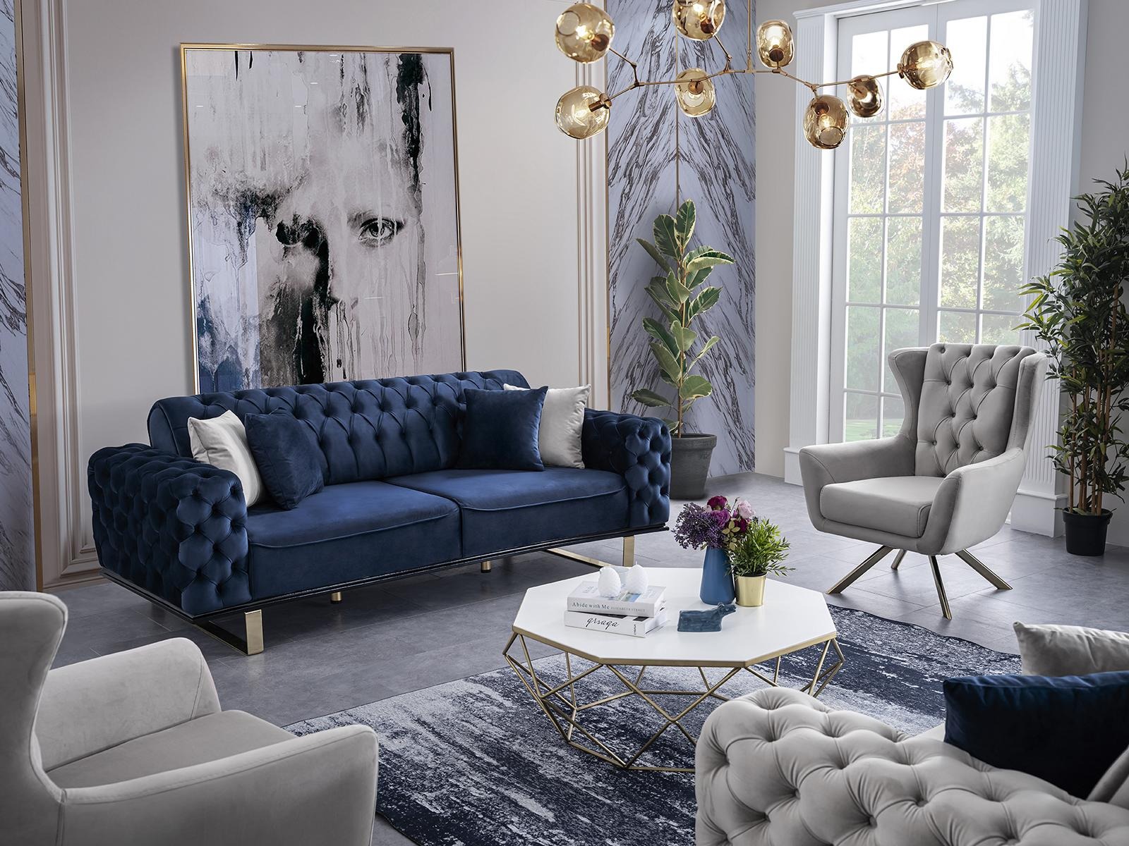 Blue e Chesterfield Couch Furniture Sofa Living room Luxury Furnishings 228cm