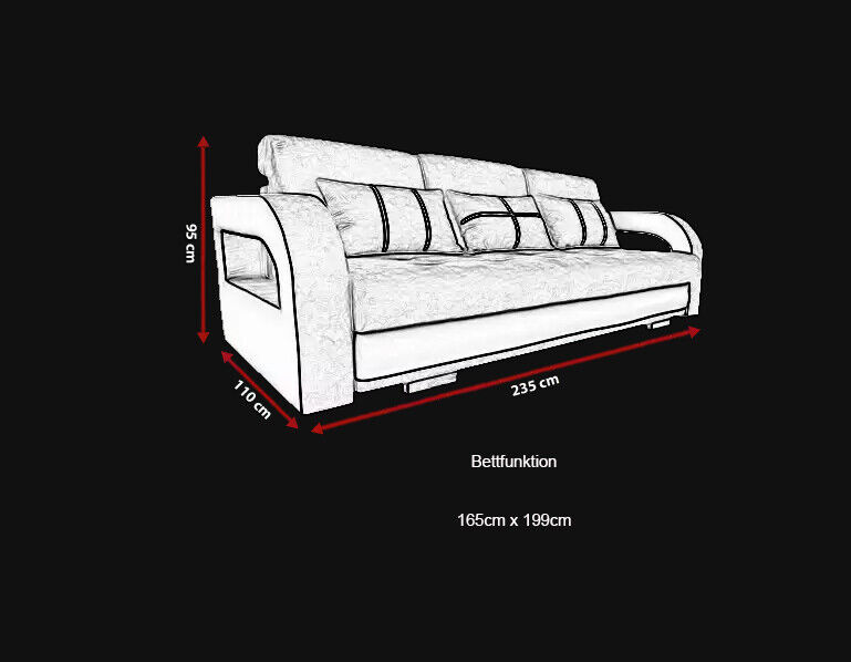 Bed function : approx . 165 x 199 cm Lying surface  (included in the price)