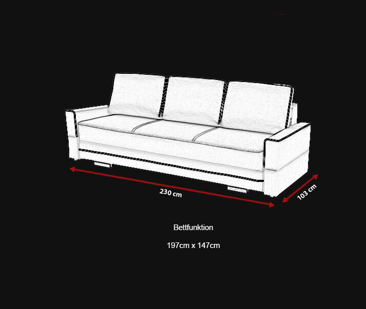 Enhance your living space with our versatile Sofa Bed Folding Couch! This 3-seater sofa not only offers ample seating but also transforms into a comfortable bed when needed. Crafted with an inner frame made of real wood and a spring core for added durability and support, this sofa bed ensures both style and functionality. Customize your sofa bed by choosing from a wide range of colors such as Emerald Green, Lavender, Peach, and more to suit your home decor. Select your preferred material from fabric to premium imitation leather, offering different groups with varying price points for your convenience. Experience the convenience of the bed function with an approximate lying surface of 197 x 147 cm, perfect for accommodating overnight guests. The included bed base ensures a comfortable sleep experience for your visitors. Make the XL Furniture Sofa Bed Folding Couch the centerpiece of your home - stylish, practical, and tailored to your preferences. Upgrade your living space today!