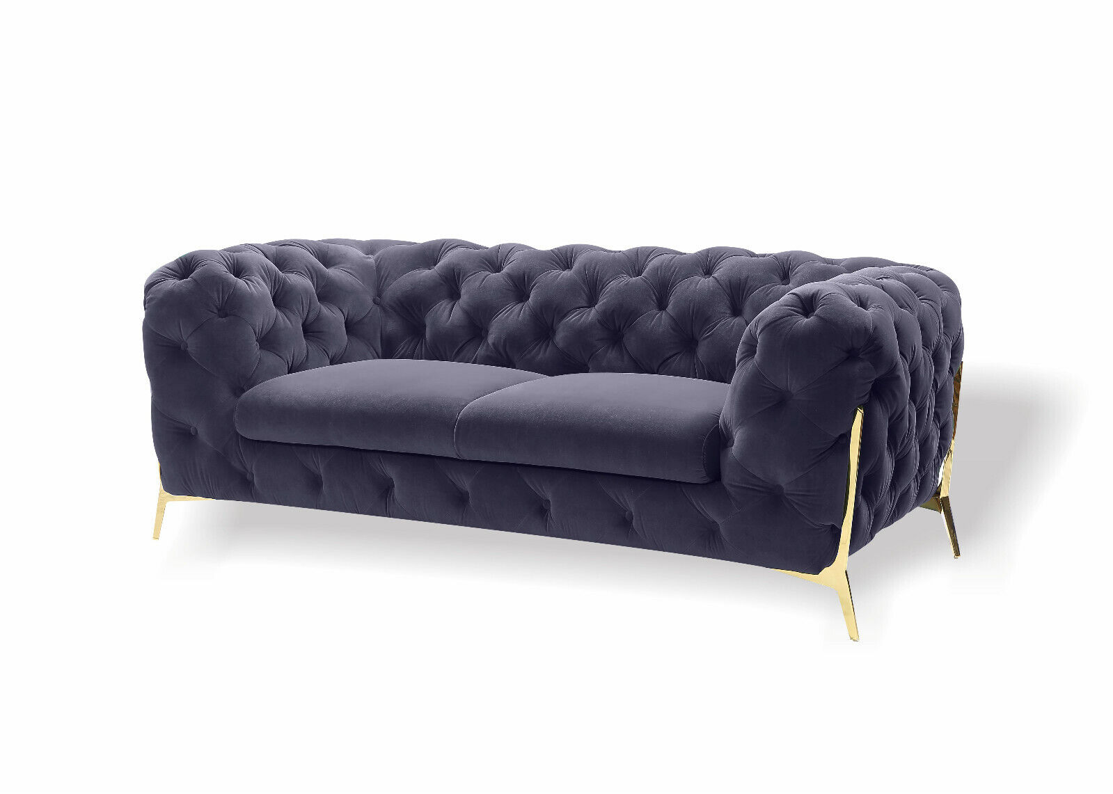 Chesterfield Velvet Designer Sofa 2 Seater Couch Textile Velvet Suite Gold Legs